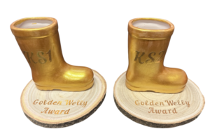 This year we have introduced our Golden Welly award which is awarded each week to two children, one from key stage 1 and one fro key stage 2. These children are chosen by the play workers for their contribution to great OPAL play each week. This could include great collaborative play, super tidying up, good use of imagination, supporting the younger children to name but a few. This is a very coveted award and is awarded to the children during our celebration assembly each week.