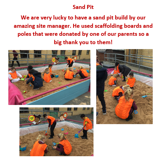 Our children have access to a wide range of materials, which they can use in their play. These include tyres, crates, wood, fabric, mud, wheeled toys and much more. Through regular play assemblies, they are taught about dynamic risk assessments and playing co-operatively with others.